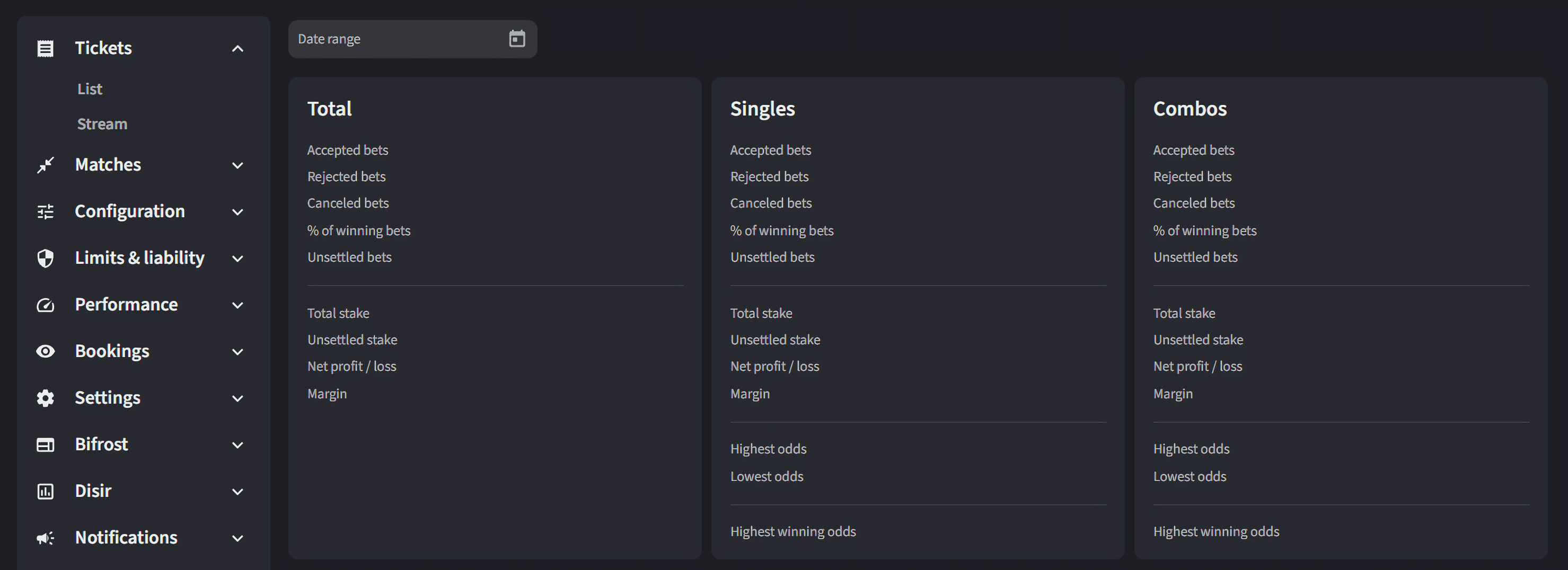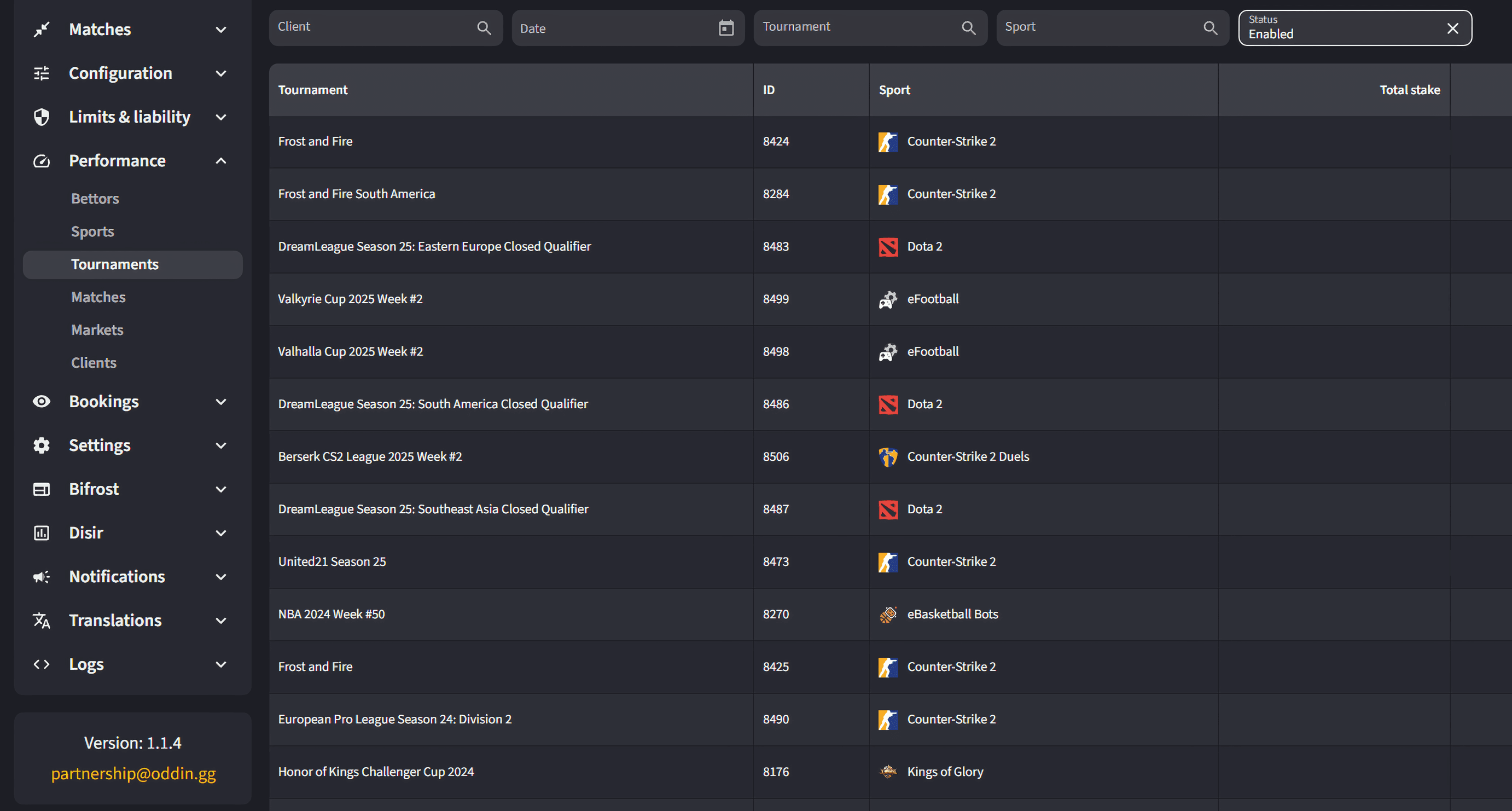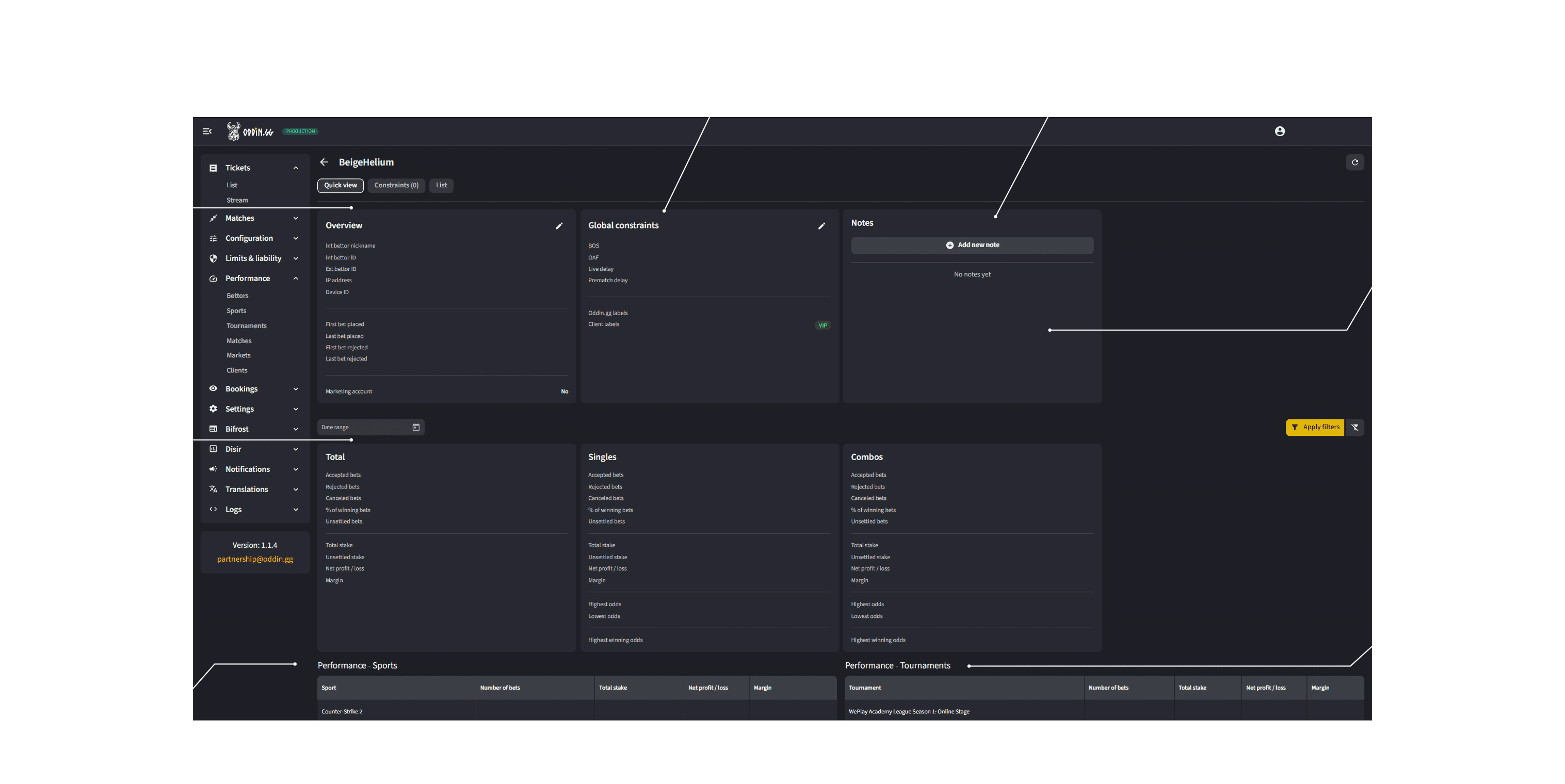 Manage margins, minimum and maximum odds for betting markets, tournament risk tiers, and other functionalities.